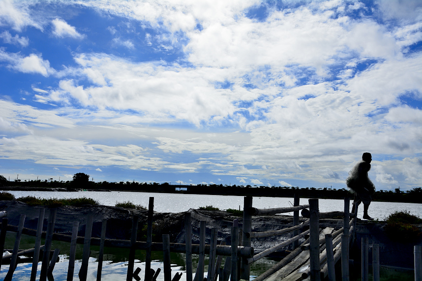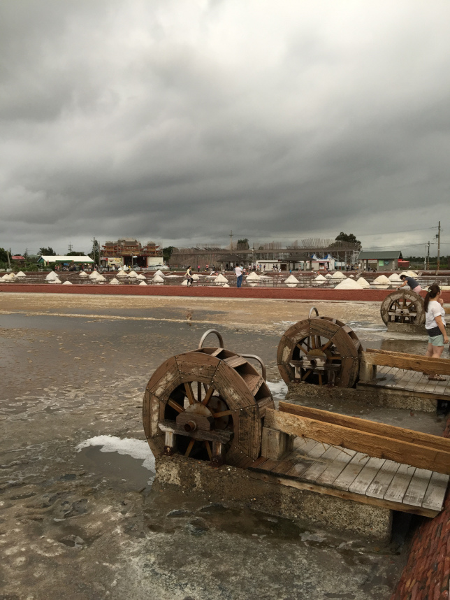 我們這次的運氣非常好,遇上了難得的陰天.沒雨~索性的到鹽田/瀉湖走上一圈.越走越擔心~起風了.風大,走來搖搖晃晃的.也開始飄起了雨絲~非常好,心想哪有機會遇上這樣的情景.