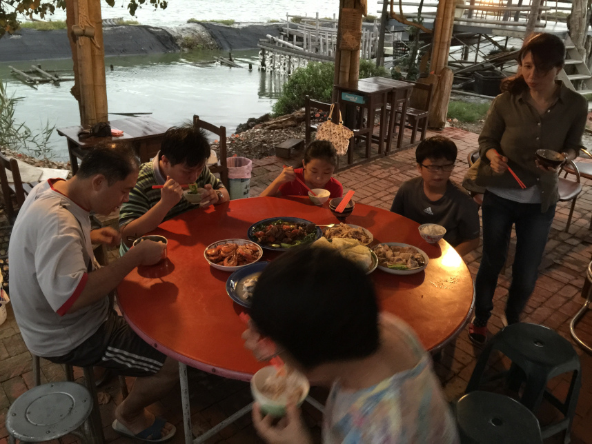 這裡就是發呆亭了-聊天/吃飯/烤石蚵的地方~晚餐時間,民宿的女主人-慧姊, 廚藝一級棒,是個多才多藝的女人.