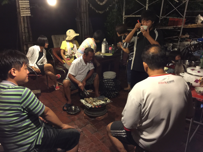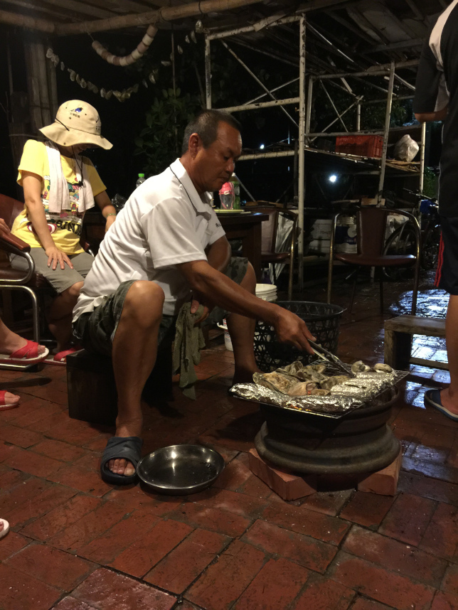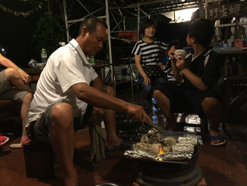 阿明哥忙進忙出的,晚上還負責烤蚵, 功力一流, 真的有練過喔. 烤出來的石蚵.....沒話說啦!!